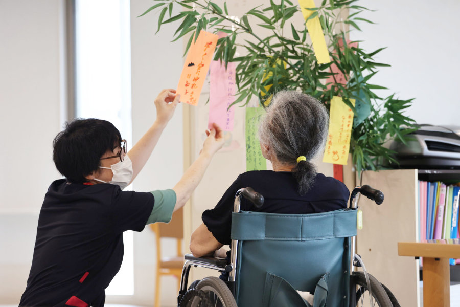 どのような仕事をしていますか? 『サービス付き高齢者住宅あやとりで、介護職員として2017年の12月から働いています。他の施設で働いていた時は常に近くで見ているという事が多かったのですが、ここはマンションのような造りなので食事時などに顔を合わせるという事が新鮮に感じました。また、以前は全てにおいて介助が必要な方をみてきた為こちらから関わりを持つ事が多かったのですが、あやとりに住んでいらっしゃる方々は逆に話しかけてくれる事が多く、それも私の仕事のやりがいの一つになっています。』