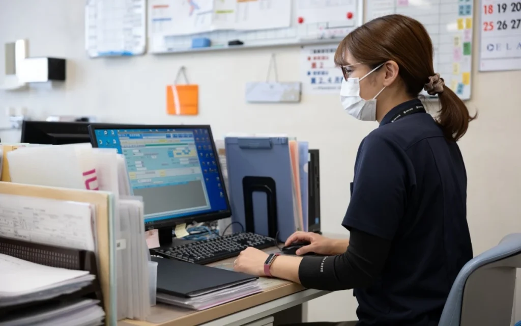 08:40 出勤、朝のミーティングや申し送り
